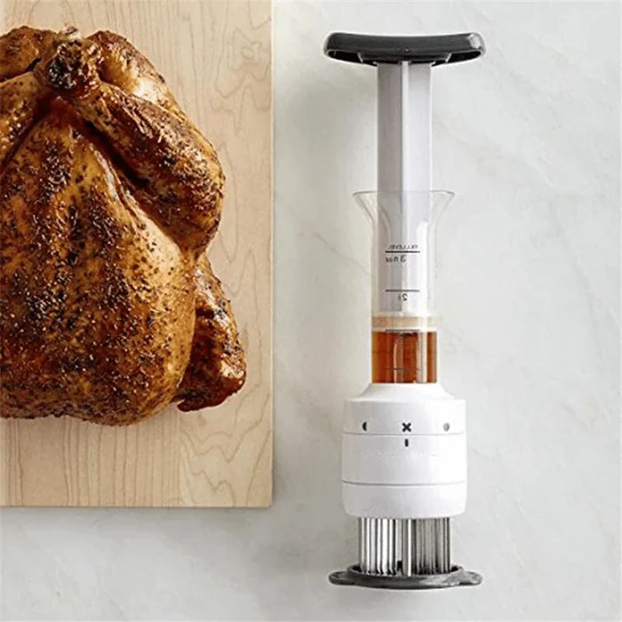 - Gasket silikon food grade mencegah kebocoran dan limbah. Tahan lama dan tajam, jarumnya menusuk daging atau unggas dengan mudah, memastikan Anda dapat memperkaya rasa potongan yang keras atau tebal