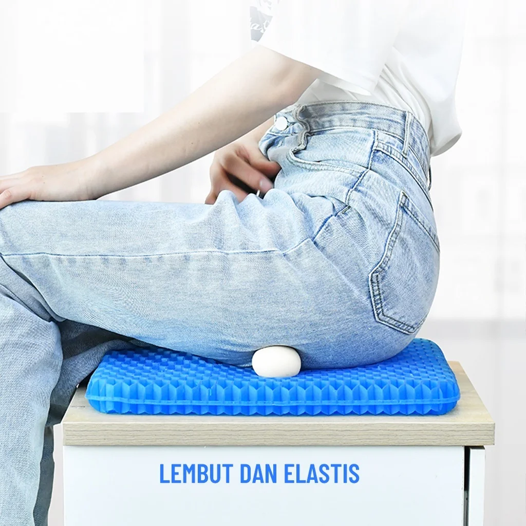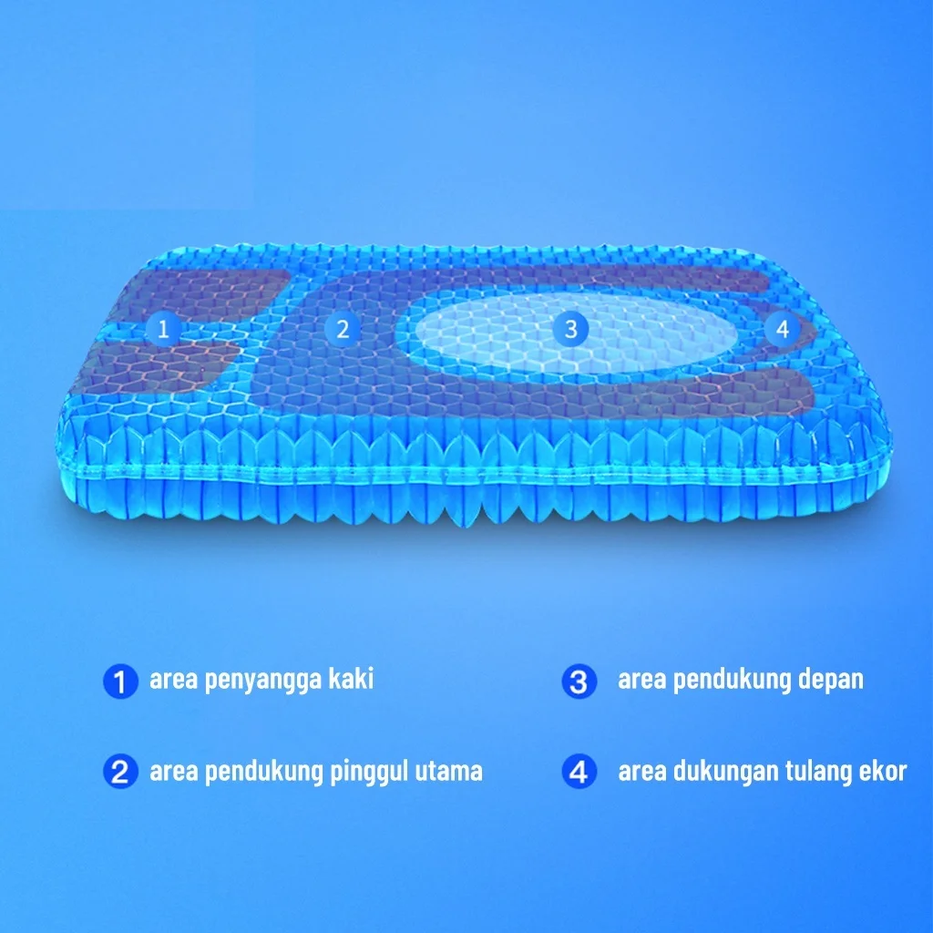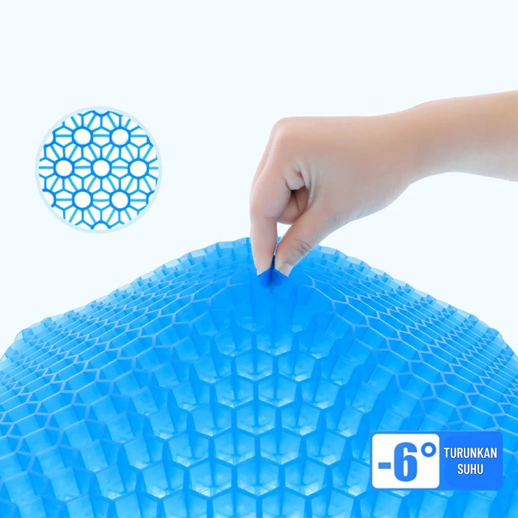 Bantal alas duduk dari bahan silikon, dengan teknologi model sarang lebah yang unik ini memiliki sistem sirkulasi udara yang bagus jadi tetap adem untuk duduk, deda dengan alas duduk memory foam.