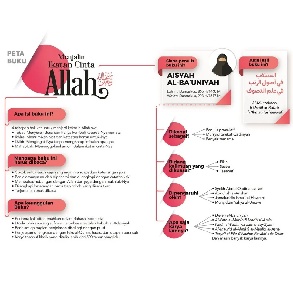 “Kitab sufi karya Syaikhah Aisyah al-Ba’uniyah (1460-1517) ini, merupakan salah satu kitab rujukan terbaik untuk kita menjalin ikatan cinta dengan Allah swt. Sebuah kitab yang tidak saja memberikan 4 tahapan spiritual yang jelas untuk mencapai cinta-Nya, tapi juga untuk membersihkan jiwa dan kembali kepada-Nya.