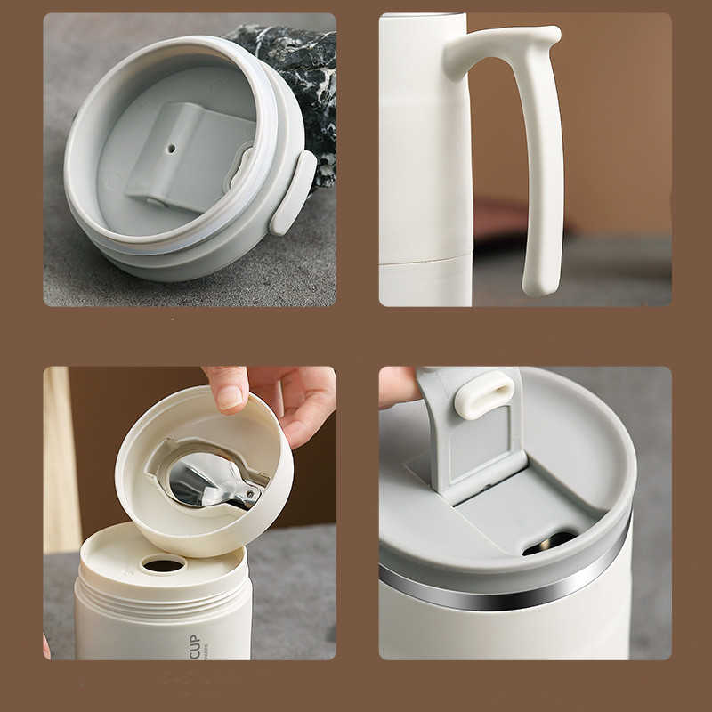Didesign unik mengikuti kenyamanan pengguna dengan memperhatikan kesehatan dan keamanan konsumsi dengan disertai sendok lipat untuk praktis membuat minuman dimana saja