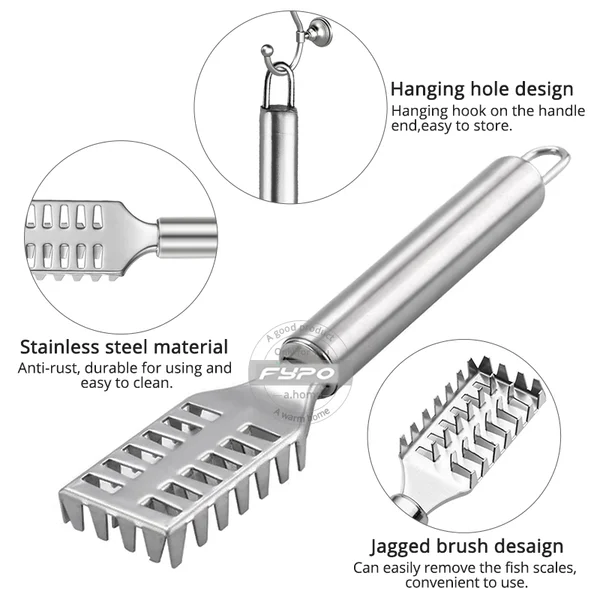 - Alat yang ampuh: Makan ikan memberi Anda banyak manfaat kesehatan, tetapi menghilangkan sisik bisa jadi sulit. Desain gigi gergaji membuat sikat penghilang sisik ikan ini lebih mudah dan aman untuk menghilangkan sisik yang membandel, terutama area yang sulit dijangkau di dekat sirip dan perut dan membantu menjaga kulit ikan tetap utuh.