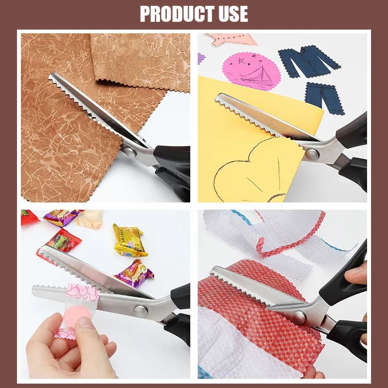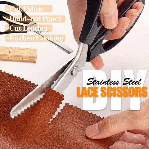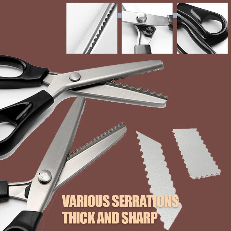 • Gunting Multifungsi – Bilah tajamnya bergigi gergaji, bukan lurus, meninggalkan pola zigzag