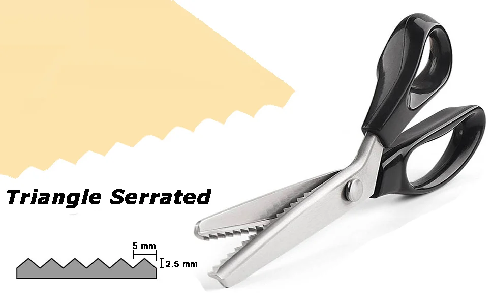 - GUNTING PINKING SERBAGUNA – Pisau tajam bergerigi meninggalkan pola zigzag saat Anda memotong, pola bergerigi dapat membatasi panjang benang berjumbai pada tepi kain yang belum dipotong dan dengan demikian meminimalkan kerusakan.