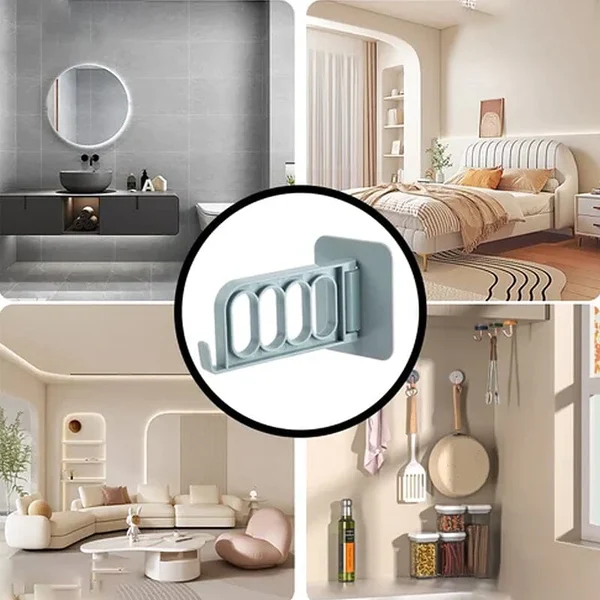 Pengaitnya mudah dipasang, stiker berperekat kuat tanpa bekas, kapasitas muat 5kg, tidak berlubang, membuat rumah Anda rapi dan indah.