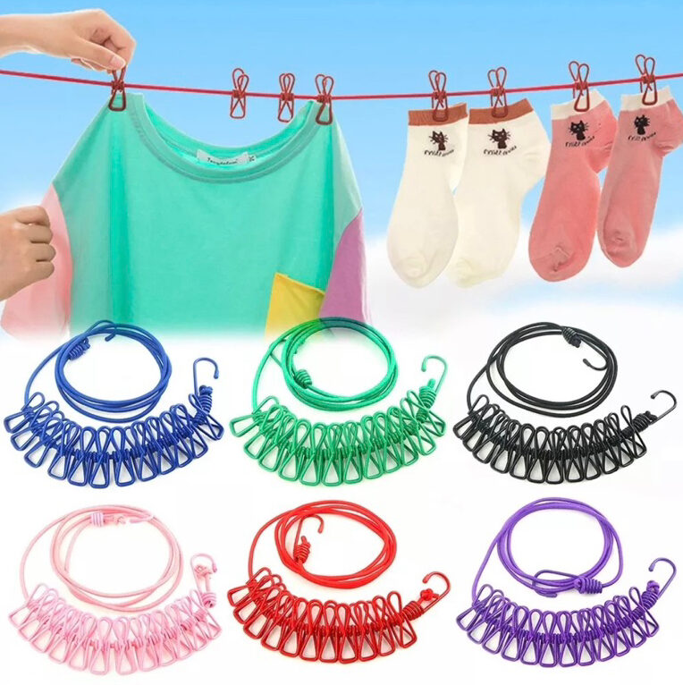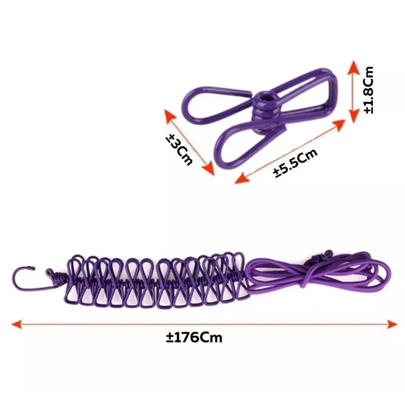 Tali Jepitan Jemuran Pakaian 12 Jepit Portable Bahan Kawat Besi merupakan tali jemuran 2in1 yang terdapat tali dan jepitan dalam 1 produk.