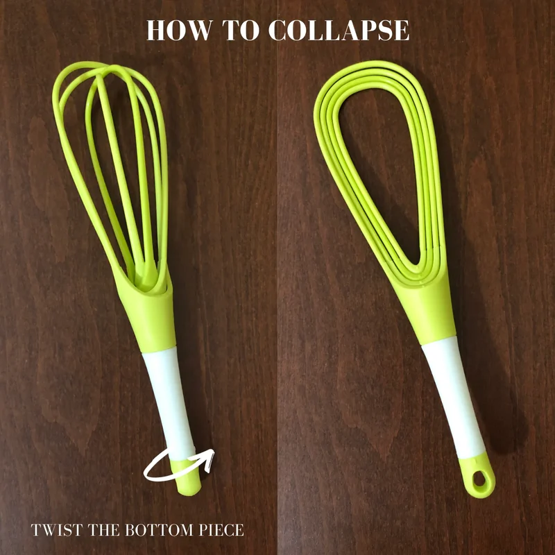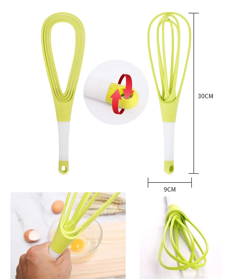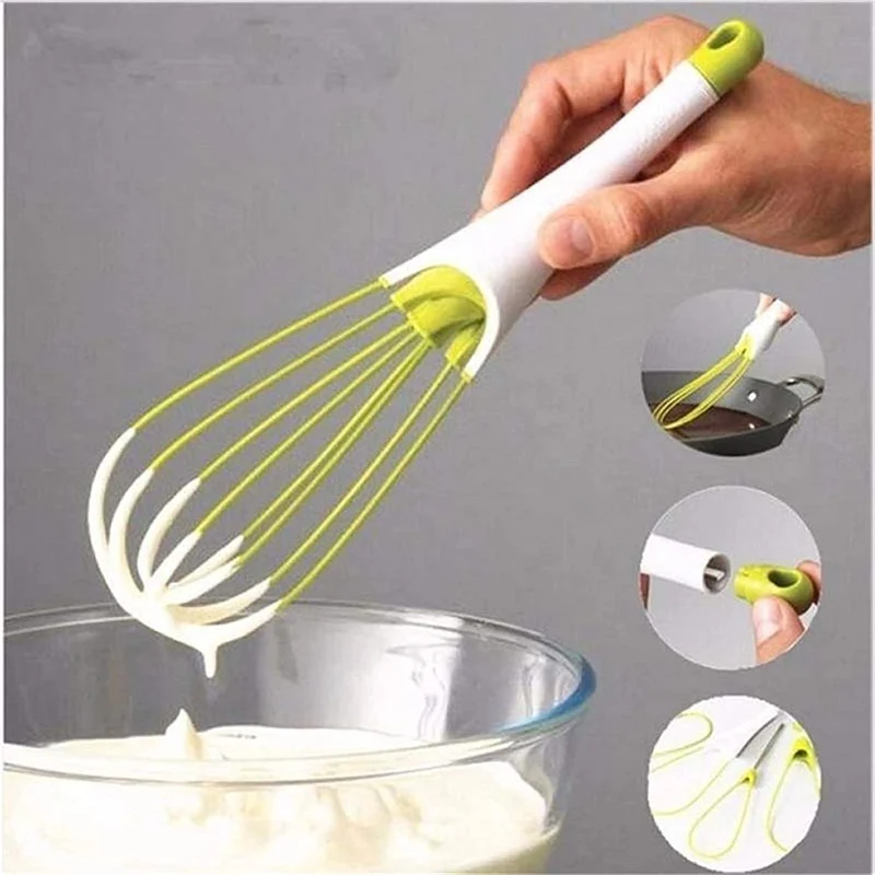 Cukup dengan memutar pegangannya, alat ini akan menjadi pengocok balon dan pengocok saus pipih