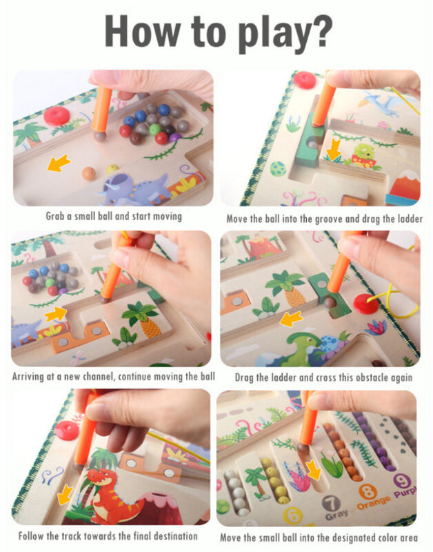 Mainan Montessori labirin magnetik ini sangat cocok untuk anak-anak berusia 3 tahun ke atas. Untuk melengkapi pengalaman bermain langsung dan tanpa layar, gunakan tongkat magnet yang terpasang untuk meluncur melintasi permukaan akrilik untuk menyelesaikan permainan mencocokkan warna dan angka. Catatan: Harap jaga agar tongkat tetap vertikal untuk penggunaan yang lebih baik.