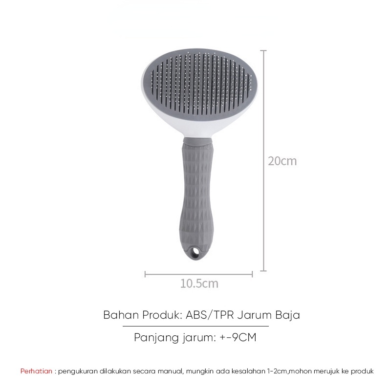 Sisir bulu hewan yang sangat cocok untuk merawat bulu peliharaan kucing anjing anda, merapikan sekaligus mengangkat bulu rontok dan kusut dari peliharaan anda. Sisir jarum yang mulus menjamin kenyamanan keamanan hewan dan dilengkapi dengan fitur tombol penghilang bulu, cukup menekan tombol sekali, bulu akan terlepas dari sisir.