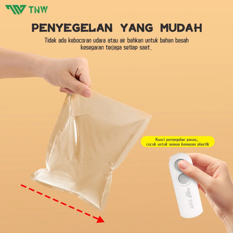 Penyegel sekaligus pembuka kantong plastik. Anda dapat dengan mudah menyegel kantong plastik dan menjaga kesegaran makanan Anda, serta dengan mudah membuka kantong plastik dengan pisau baja tahan karat yang tajam.