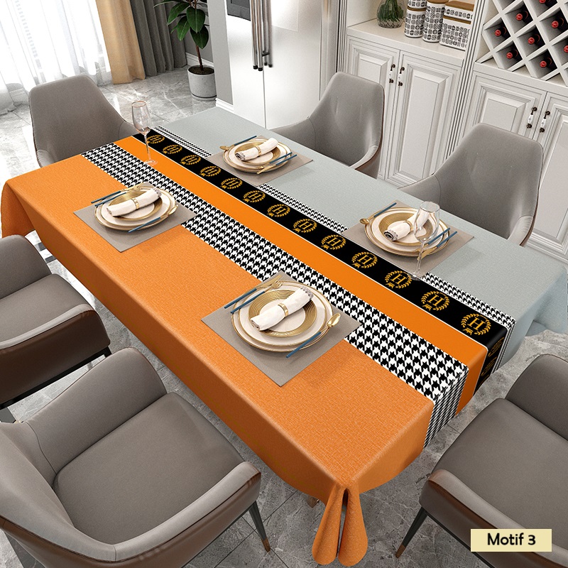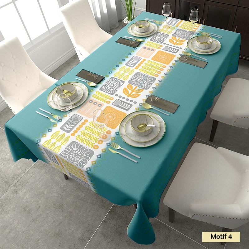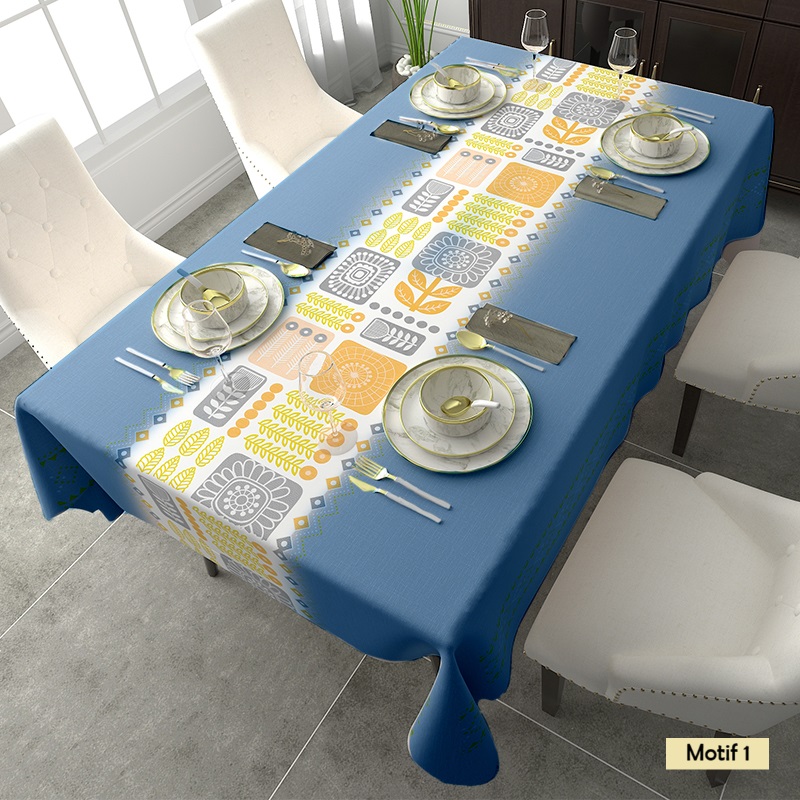 Taplak meja cantik dari bahan PEVA /plastik anti air. Hadir dengan aneka motif menarik, tampilan meja jadi cantik dan modern. Bahan bisa digunting dan disesuaikan dengan ukuran meja.