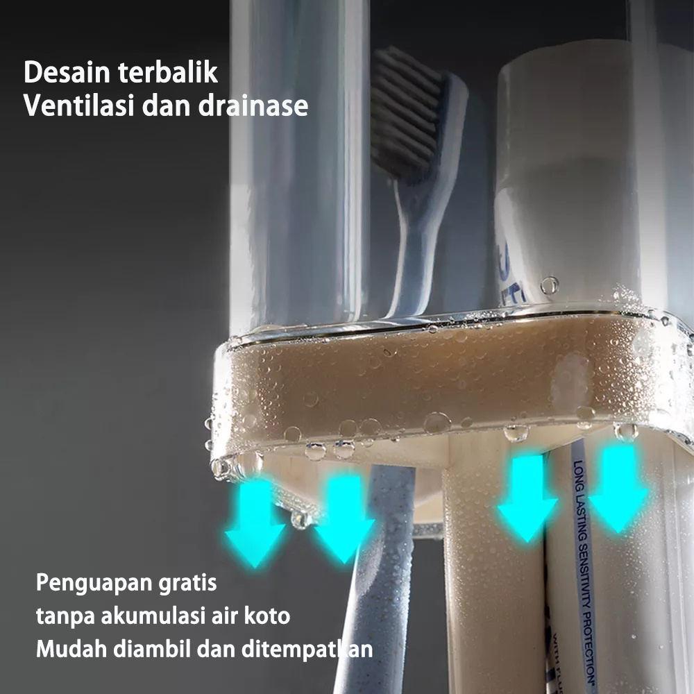 Dengan 3 slot di tengah untuk memisahkan pasta gigi dan sikat gigi agar tetap berdiri, tempat sikat gigi untuk kamar mandi ini dapat menghemat tempat dan menjaganya tetap rapi, dapat menjaga sikat gigi tetap bersih dan kering agar terhindar dari polusi udara.